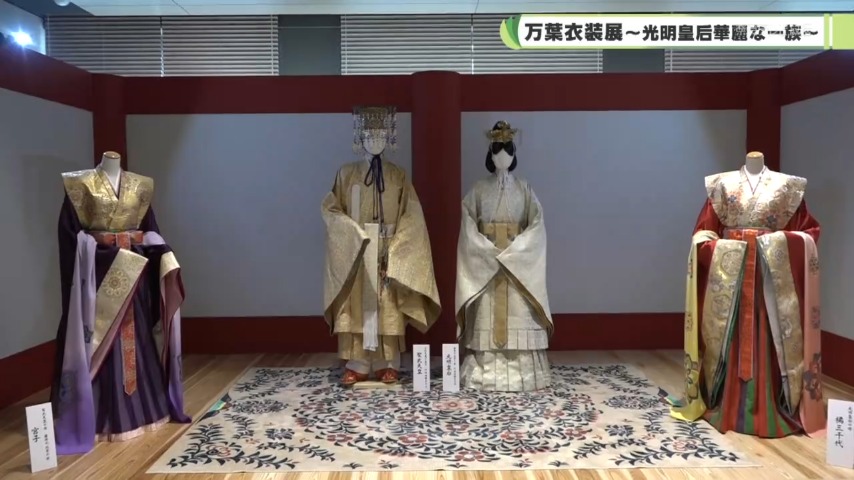 奈良時代の衣装を現代に蘇らせた「万葉衣装展」が平城宮いざない館で開かれています。