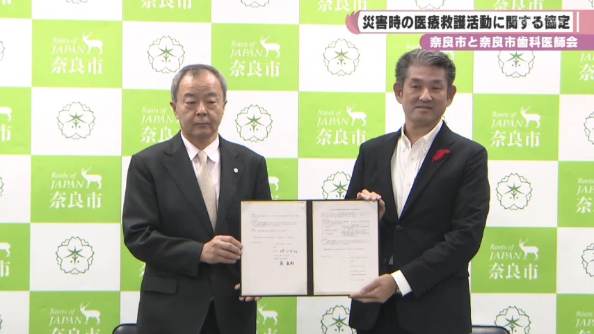 - 災害発生時に、口腔ケアなどを通じ被災者の健康を守ることを目指し、奈良市と奈良市歯科医師会が3日、協定を結びました。