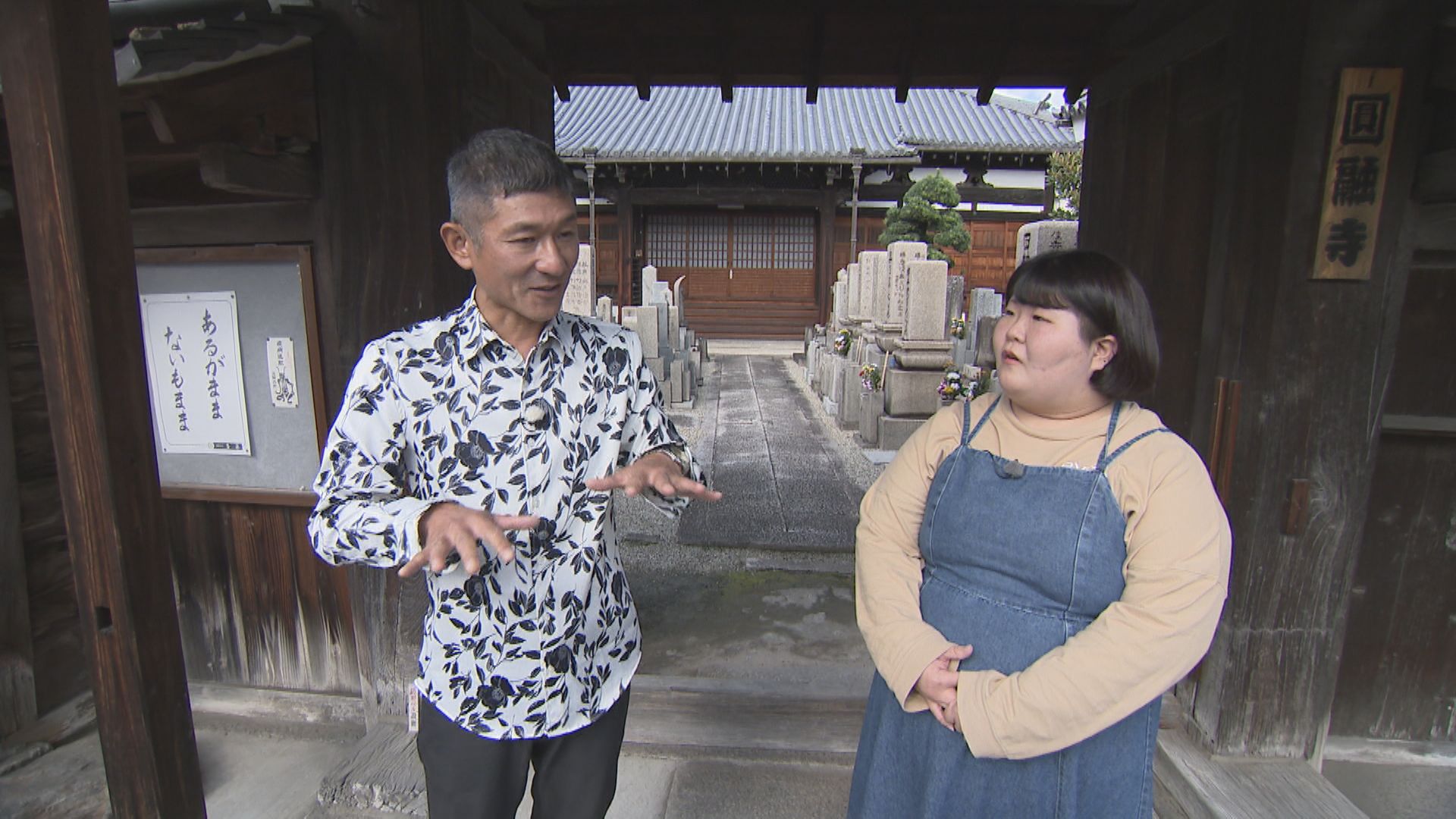 今回訪れるのは大和郡山市の圓融寺です。創建は戦国時代で当時は真言宗でしたが、1641年に融通念仏宗が広まるなかで融通念仏宗の寺となり、城下町のこの地に移転しました。本堂には融通念仏 中興の祖である大通が揮毫した扁額も。また、大念佛寺に伝わる龍神の怒りを鎮めた伝説を持つ宝物・鏡鉦のレプリカもあります。哲夫と一緒にめぐるのは、祖父がこのお寺のご住職の知り合いだという大和郡山市出身の「紫式部」ことみさんです。