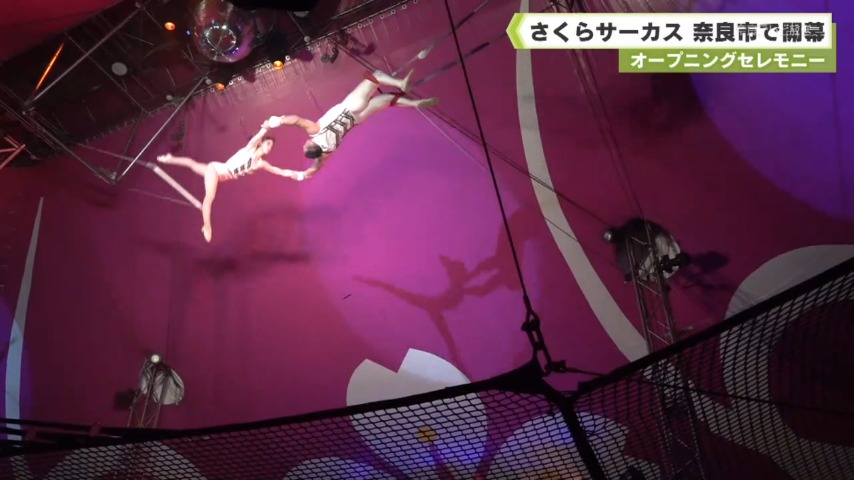 伝統的なサーカスのパフォーマンスで魅せる「さくらサーカス」が、4年ぶりに奈良に帰ってきました。15日のオープニングセレモニーでは、関係者が出席してテープカットが行われ開幕を祝いました。公演では、空中で回転する大きな輪の内側と外側で演技する大車輪や、空中で華麗な技を披露する空中ブランコなど、アクロバティックな演目の数々が繰り広げられ観客を魅了します。