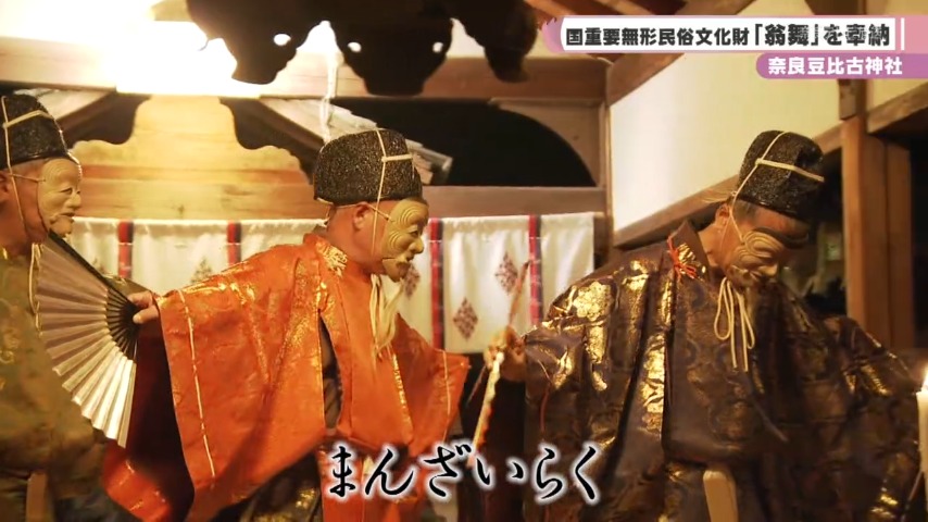 奈良豆比古神社 国重要無形民俗文化財「翁舞」を奉納