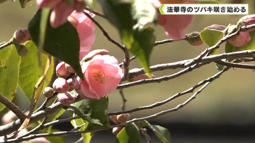 四季折々の花が楽しめる奈良市の法華寺では、春の訪れを告げるツバキの花が咲き始めました。