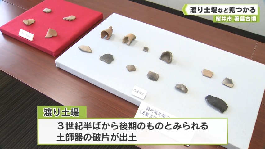 邪馬台国の女王・卑弥呼の墓との説がある桜井市の箸墓古墳の発掘調査で、古墳周りの堀を横断して墳丘と外部をつなぐ渡り土堤(わたりどて)などが見つかりました。