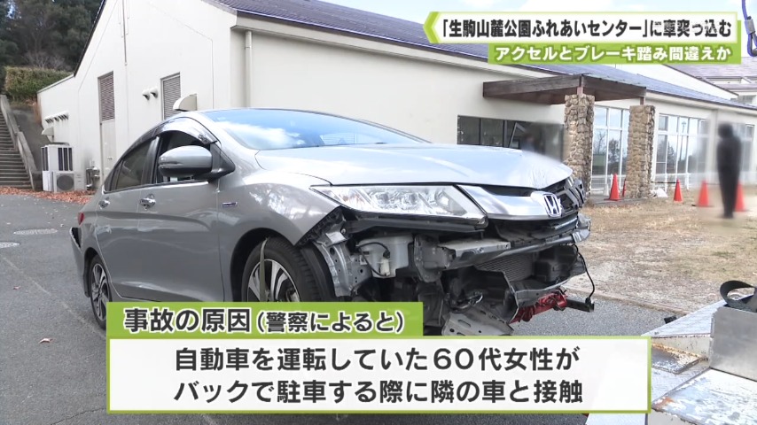 アクセルとブレーキ踏み間違えか 「生駒山麓公園ふれあいセンター」に車突っ込む