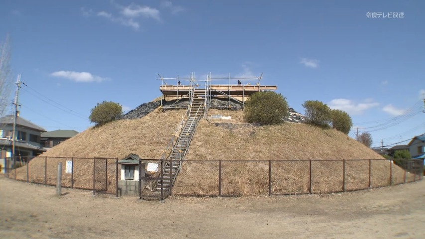 大和郡山市の指定文化財「割塚古墳」の発掘調査で横穴式石室の奥側の壁=「奥壁」の裏にも通路があったことが新たに分かりました。