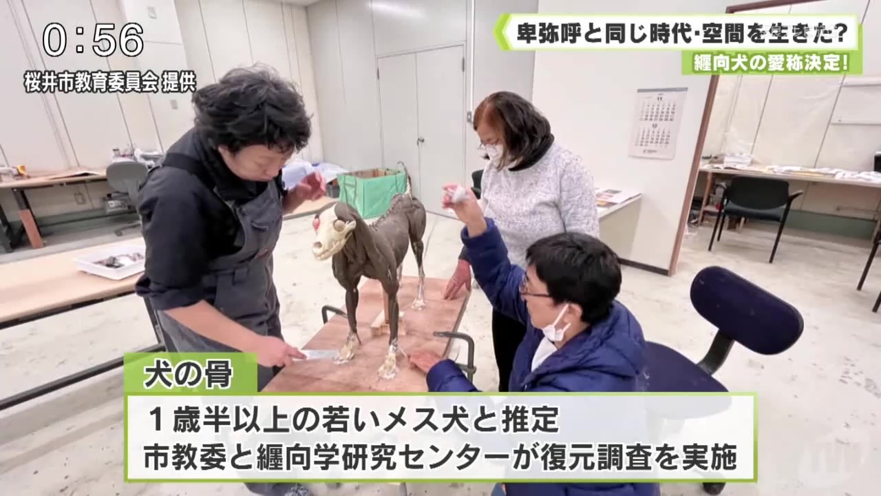 - 桜井市の纒向遺跡から出土した3世紀前半のイヌの骨をもとにつくられた復元模型について、桜井市は、広く募集していた愛称が決まったと発表しました。その名前は・・・