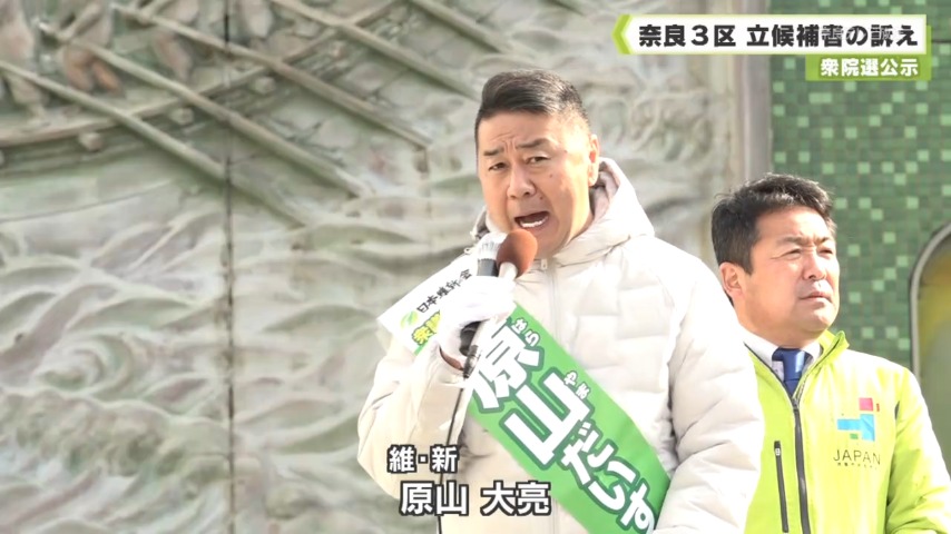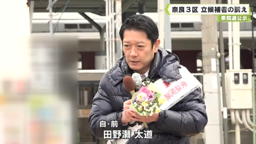 「奈良3区では、豊かでにぎやかなまちづくりを進め、将来の子や孫にプレゼントしたい。交通を良くして宿泊してくれるお客さんをどんどん増やしていきたいと思います」