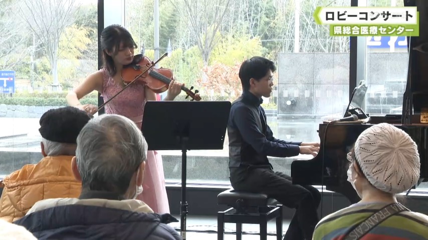 - 県総合医療センターでは通院する人に心が安らぐひとときを提供しようと週一回昼の時間帯にロビーのグランドピアノを使ってコンサートが、開かれています。