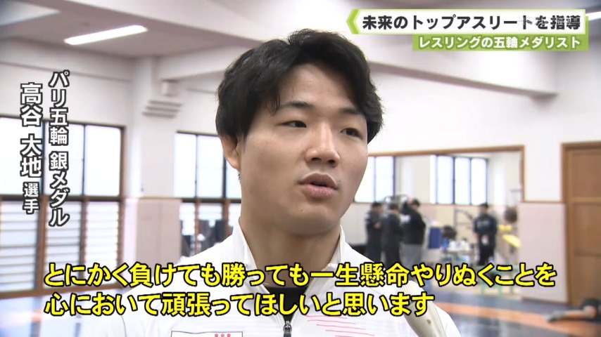 指導するのはパリオリンピックのレスリング競技で銀メダルに輝いた高谷大地選手です。