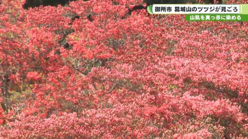 御所市にある葛城山では、真っ赤なツツジが見頃を迎えています。