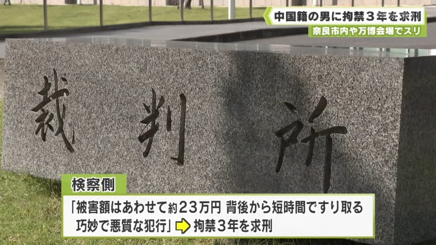 奈良市内や万博会場でスリ 中国籍の男に拘禁3年を求刑
