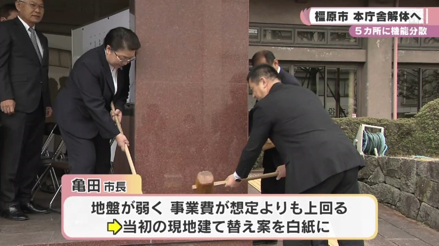 橿原市役所 本庁舎の3つの建物解体へセレモニー