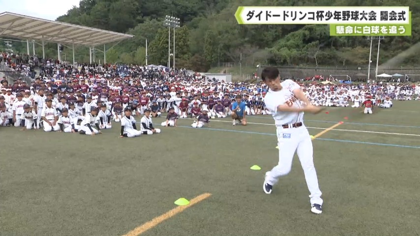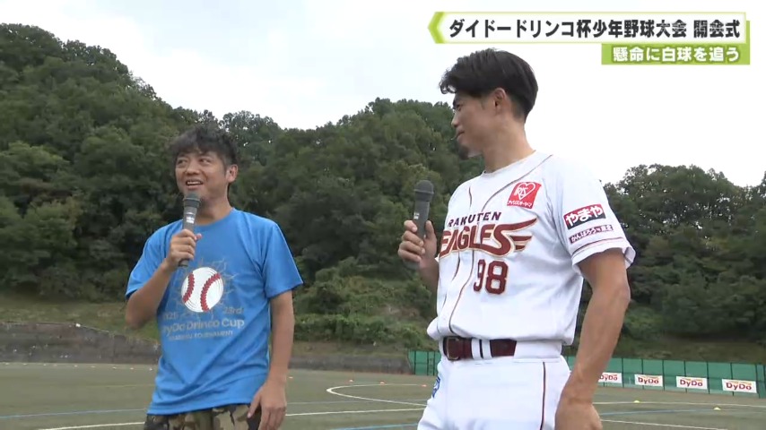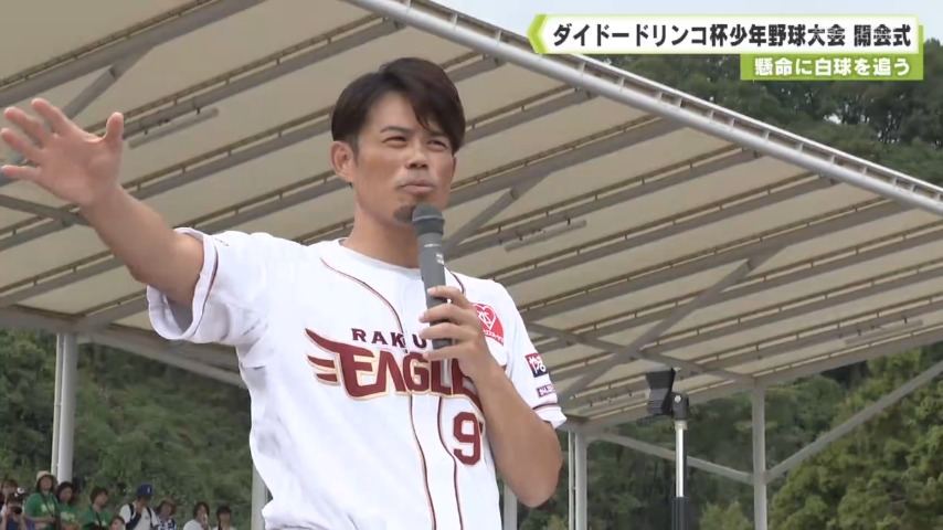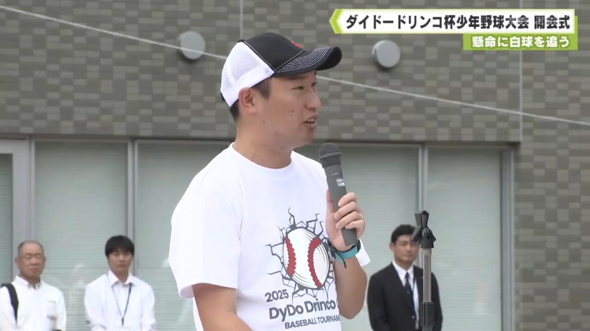 続いて特別ゲストとして元プロ野球選手の今江敏晃(いまえとしあき)さんが登場し「チームみんなで力を合わせ野球を楽しんでください」と激励しました。