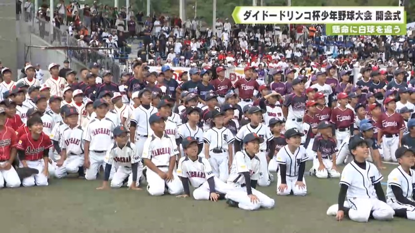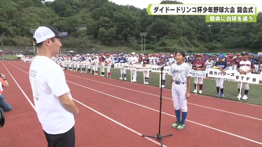 野球少年らが熱い戦いを繰り広げるダイドードリンコ杯少年野球大会の開会式が5日、御所市で開かれました。