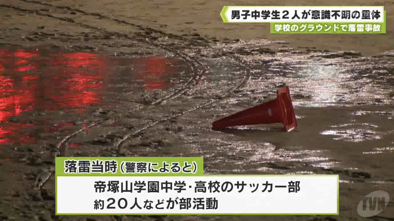 帝塚山学園グラウンドで落雷事故 男子中学生2人が意識不明の重体