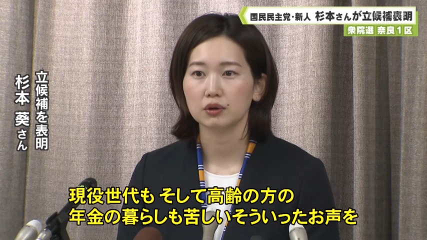 - 27日公示の衆議院選挙に向け、奈良1区に国民民主党の新人・杉本葵さんが、立候補を表明しました。
