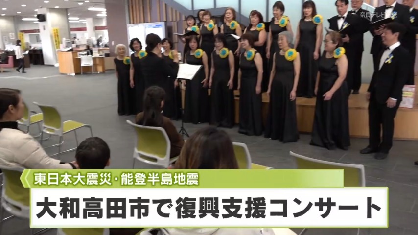 また、大和高田市では東日本大震災と2024年1月の能登半島地震の復興支援コンサートが開かれました。コンサートでは自分たちが住むまちや命をテーマに市民のグループが合唱を披露しました。
