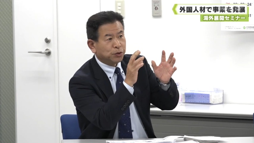 次に、2027年度に見直される技能実習制度など外国人の在留資格について、企業と実習生の間に立つ監理団体の立場から、まほろば協同組合代表理事の中垣康浩さんが解説しました。