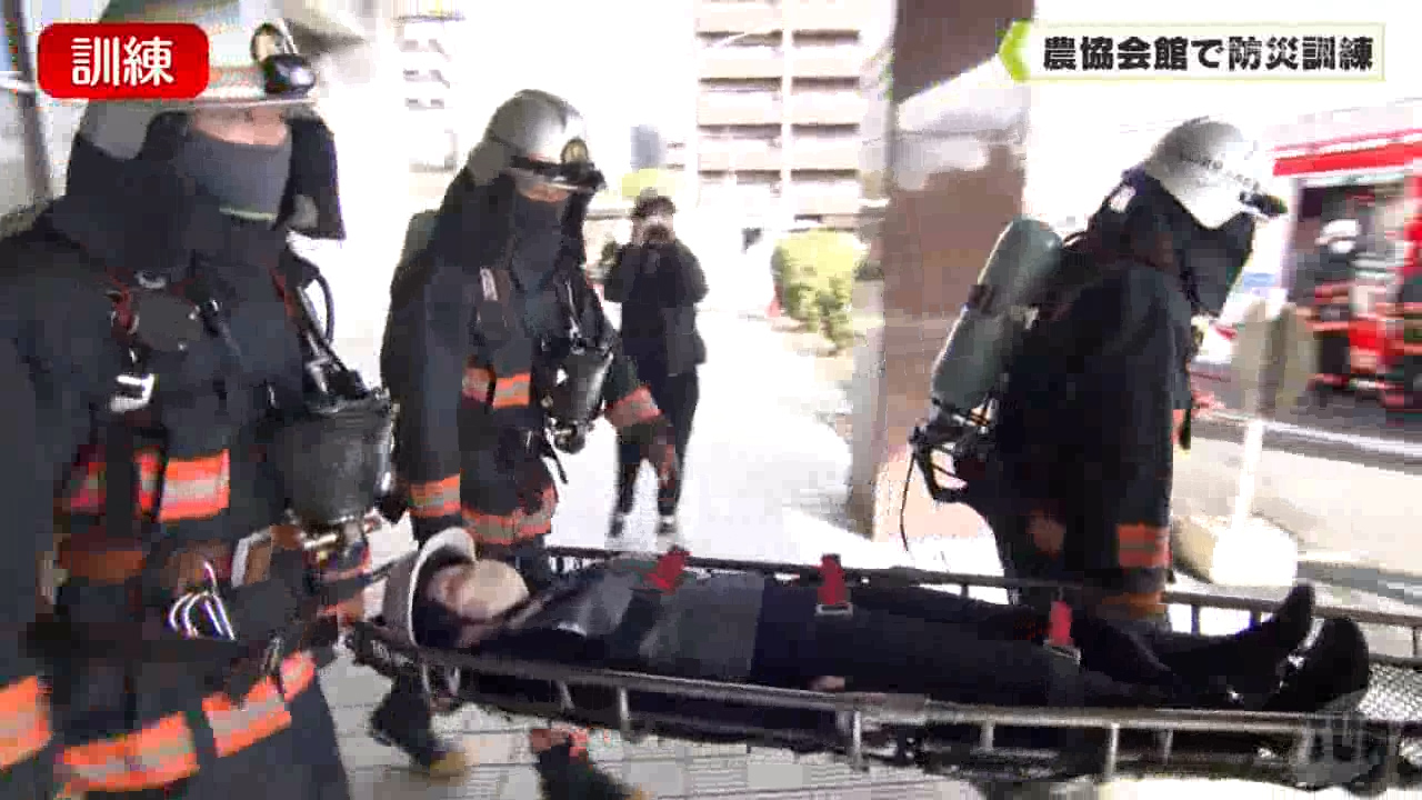 訓練は、県内で震度6弱以上の大規模な地震が発生。ビルの3階で火災が発生し、職員による初期消火が失敗した想定で行われました。
