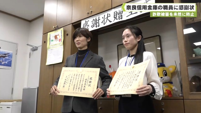 奈良警察署は、詐欺被害を未然に防いだ金融機関の職員2人に感謝状を贈りました。