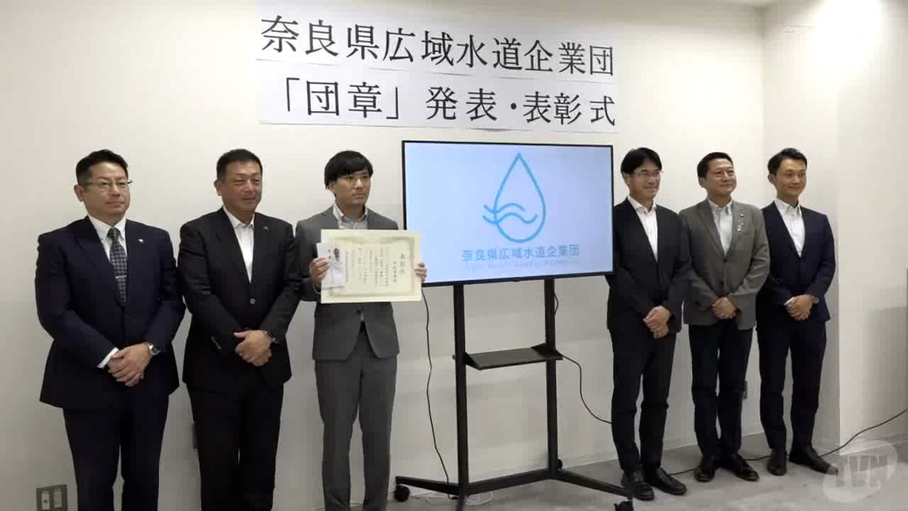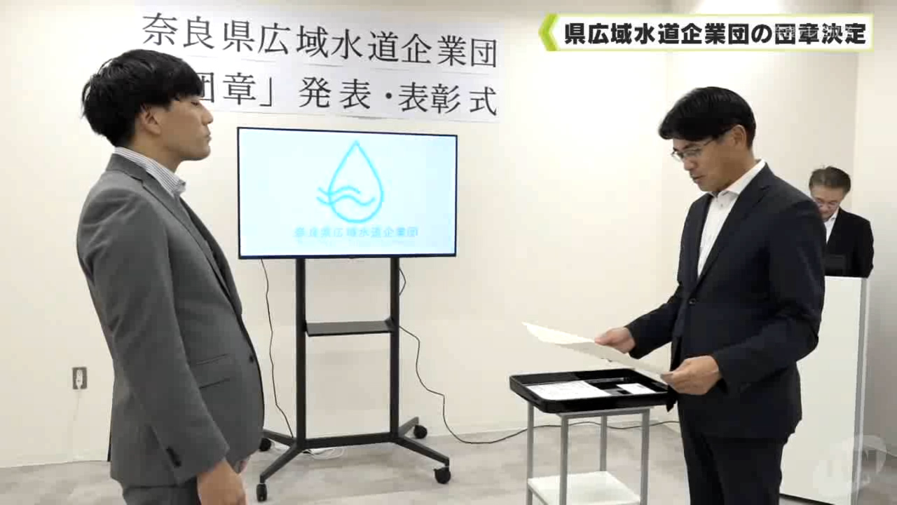 - 2025年4月から事業を開始した「県広域水道企業団」は、認知度やイメージ向上などを目的に、シンボルマークとなる団章を広く一般から募集していました。県内外から54作品の応募があり、その中から選ばれたのは、広陵町に住む竹村勇希さんの作品です。