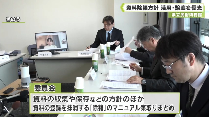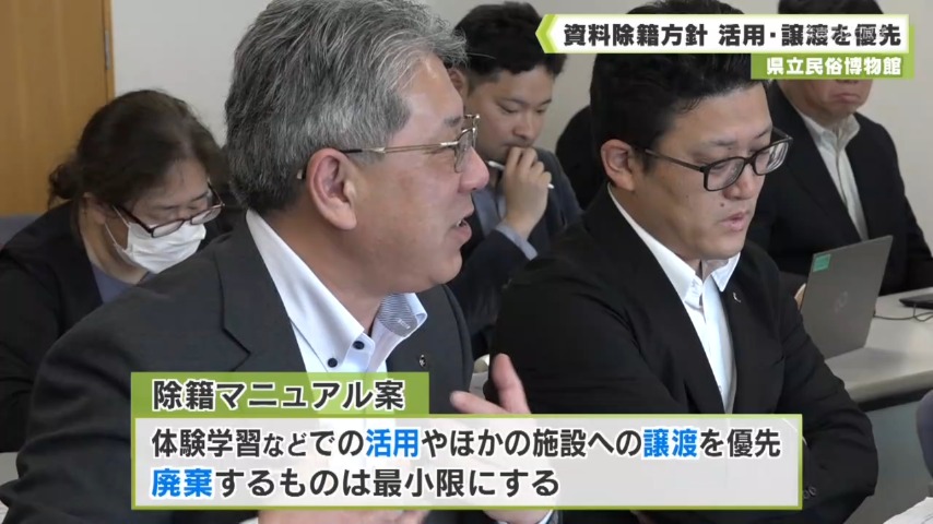 資料の収蔵スペース不足が課題となる、県立民俗博物館をめぐり、資料の保存方針などを検討する委員会は、資料の除籍について、活用と譲渡を優先し、廃棄は最小限とするマニュアル案などを取りまとめました。