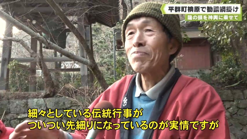 平群町椣原(へぐりちょうしではら)で11日、地域に悪霊や疫病などが入らないように願いを込めた勧請(かんじょう)綱掛けが行われ、1000年以上続くとされる行事に今回、新たな動きがありました。
