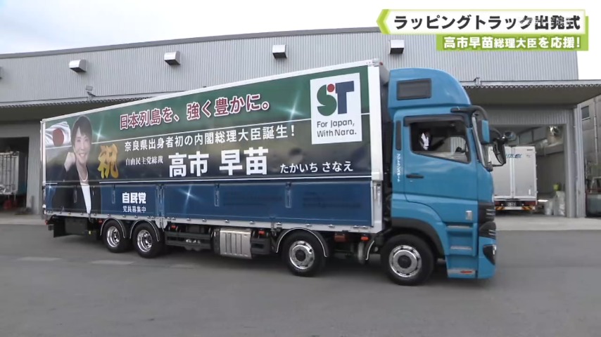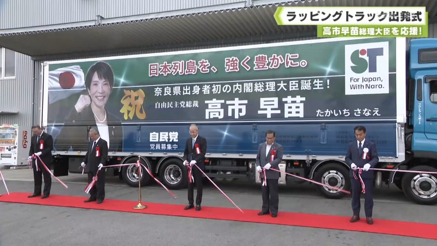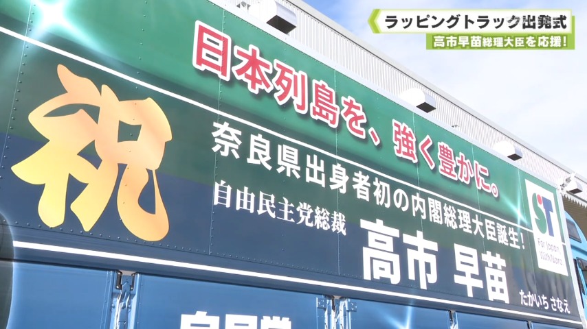 奈良県出身者、そして女性として史上初めての総理大臣に就任した高市早苗さんを応援する、ラッピングトラックが24日、お披露目されました。