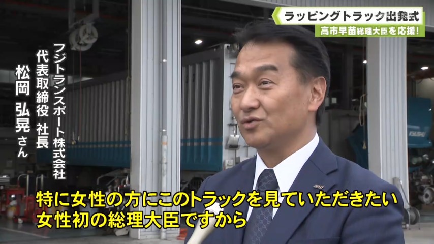 「特に女性の方にこのトラックを見ていただきたい、女性初の総理大臣ですから。SNSにアップしていただいたりとか、応援してくれる人が1人でも増えればいいかなと思っています。」