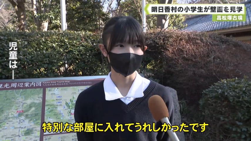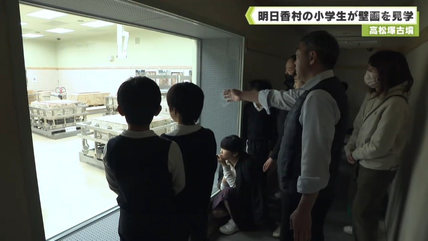 国宝に指定されている高松塚古墳の壁画を地元・明日香村の小学生が見学しました。