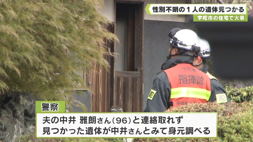 - 23日の午後、宇陀市の住宅で火事があり焼け跡から性別不明の1人の遺体が見つかりました。