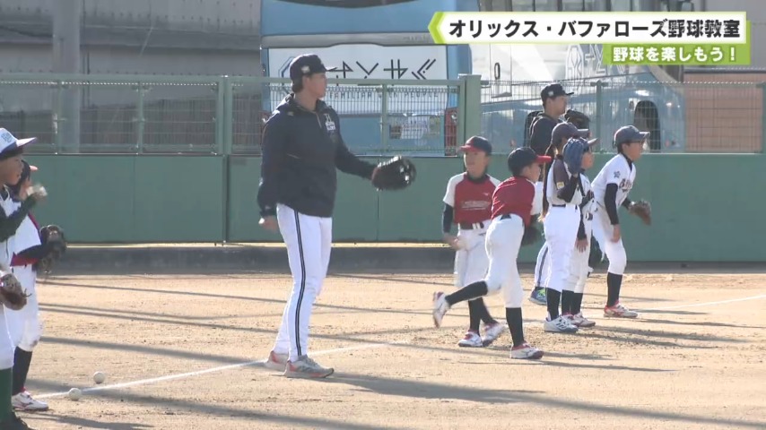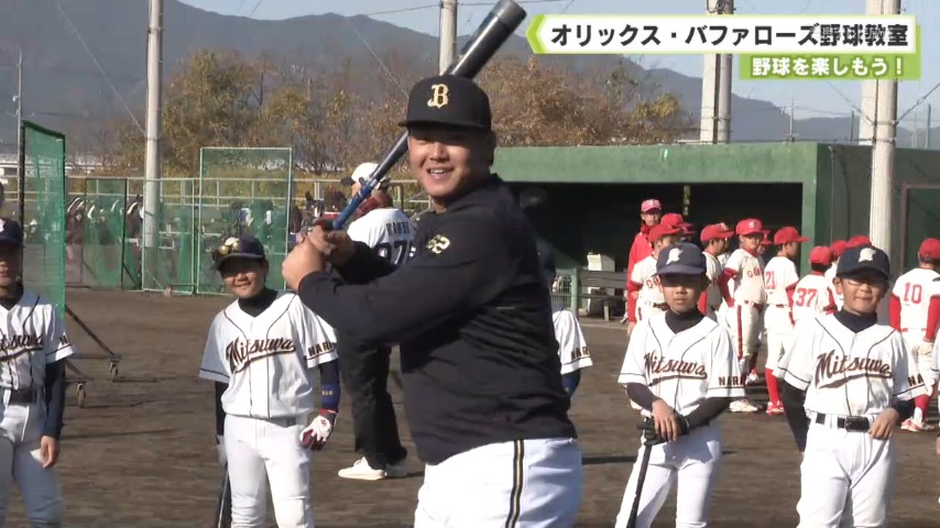 - この教室は、橿原市に本社を置く製薬会社・佐藤薬品工業が地域貢献の一環で開いたもので約120人の小学生が参加しました。12月7日は、オリックス・バファローズの選手などが講師を務め、佐藤薬品工業軟式野球部のメンバーが教室をサポートしました。