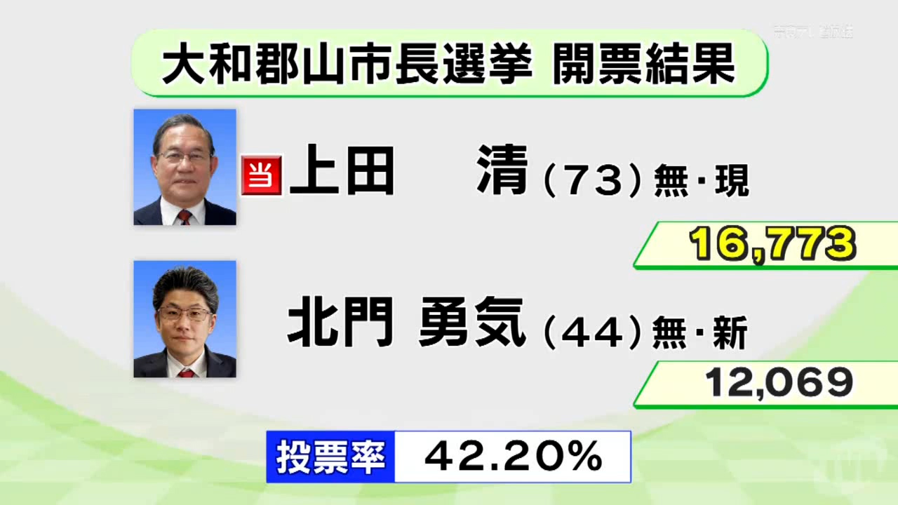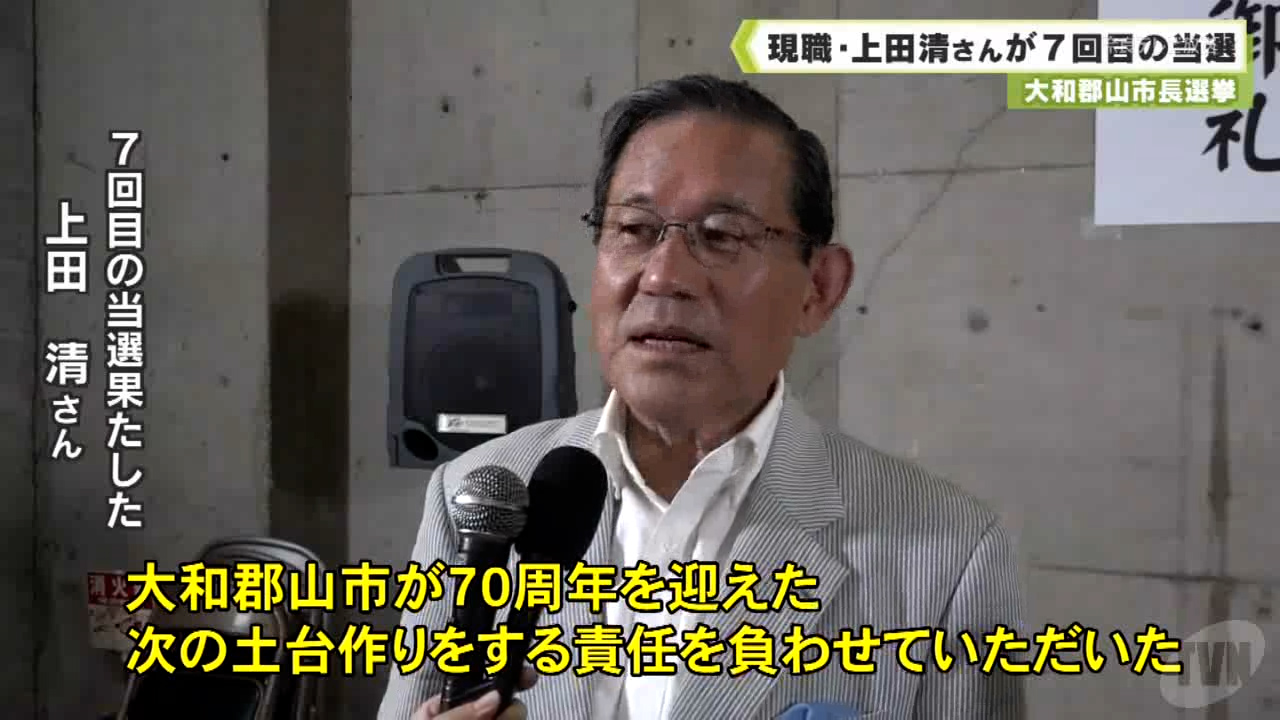 - 任期満了に伴う大和郡山市長選挙で無所属の現職・上田清さんが7回目の当選を果たしました。