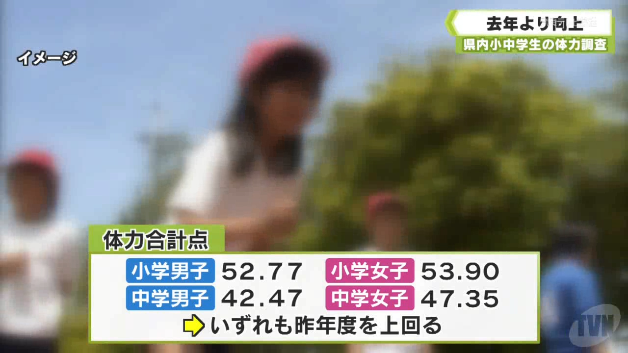 それによりますと令和7年度、「体力合計点」の平均は小中学生の男女とも昨年度を上回りました。特に中学生男子は全国平均を上回り、コロナ禍以降低下していた体力が、元の水準に戻ったとみられます。