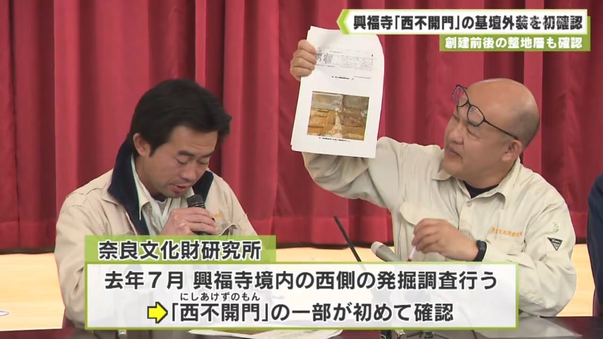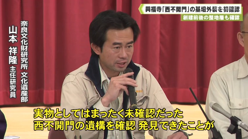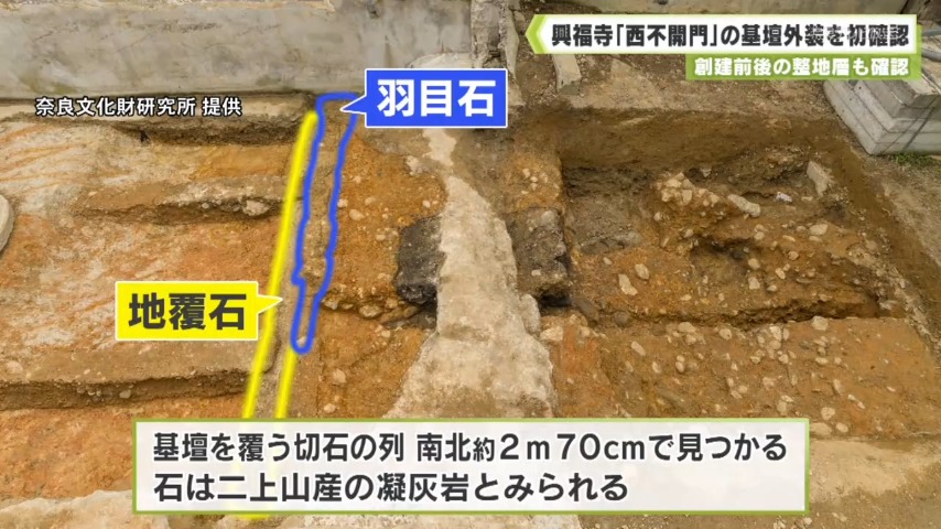 奈良市の史跡・興福寺旧境内の発掘調査で、寺の南西にあったとされる「西不開門(にしあけずのもん)」の基壇外装が、初めて確認されました。
