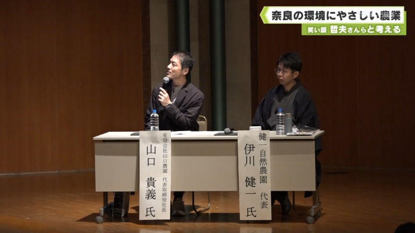 環境にやさしいこれからの農業について、人気お笑いコンビ・笑い飯の哲夫さんらと考えるトークセッションが16日、奈良市で開かれました。