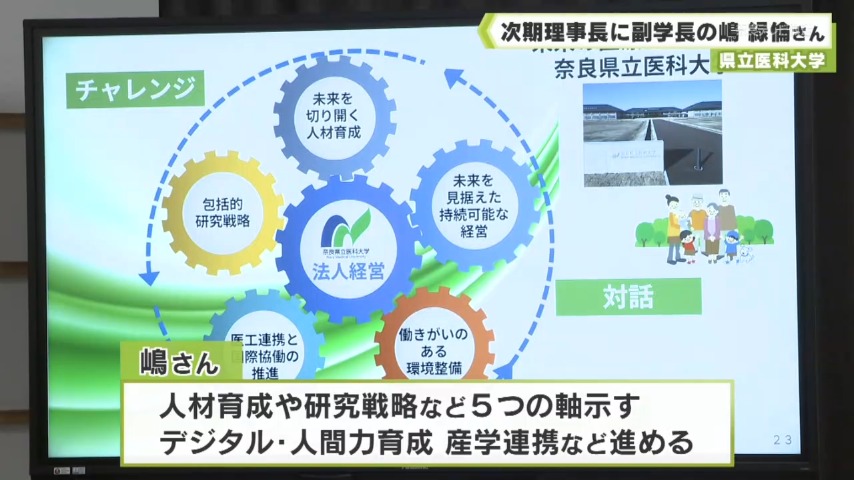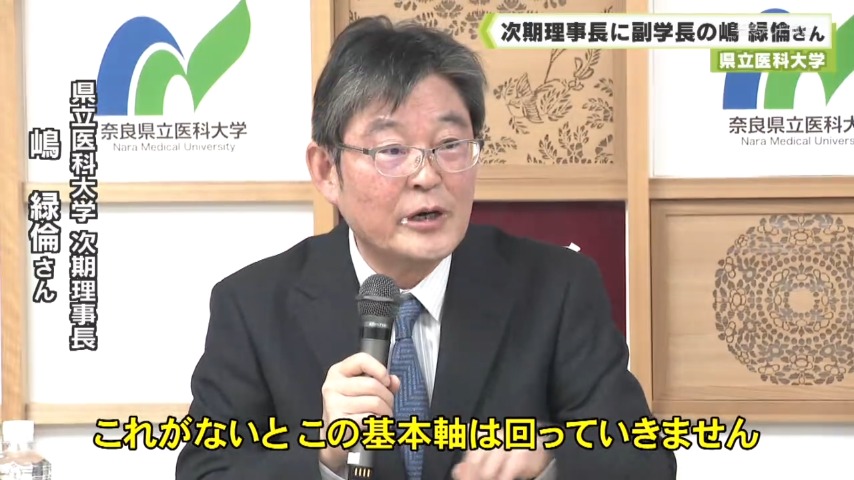 「全教職員の知を結集すること。そして対話すること。そしてチャレンジしていく。これがないと基本軸は回っていきません。しっかりこれをを回して、目標である未来の医療を創造する奈良県立医科大学、そして奈良県の医療、奈良県民に貢献していきたいと考えております。」