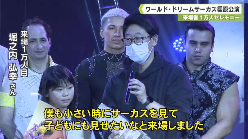 - 「僕も小さい時にサーカスを見て、子どもにも見せたいなと来場しました。(来場者1万人目を)大変嬉しく思うので、(サーカスを)しっかり応援したいと思います。」