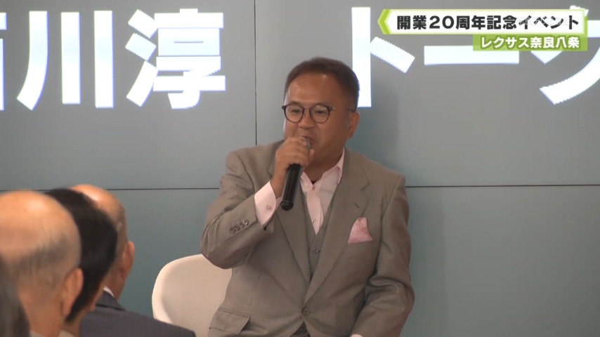 18日は、約100人が参加して開業20周年を記念する式典が行われ、奈良トヨタグループの菊池攻代表取締役社長がこの20年への感謝を述べました。
