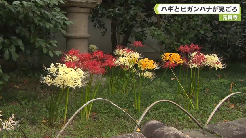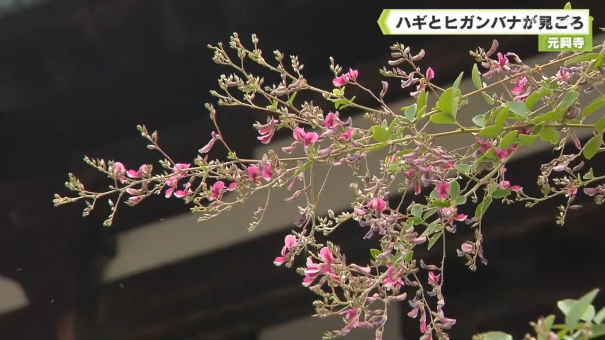 - 奈良市にある元興寺では、秋の訪れを告げるハギの花などが見ごろを迎え、訪れる人を楽しませています。