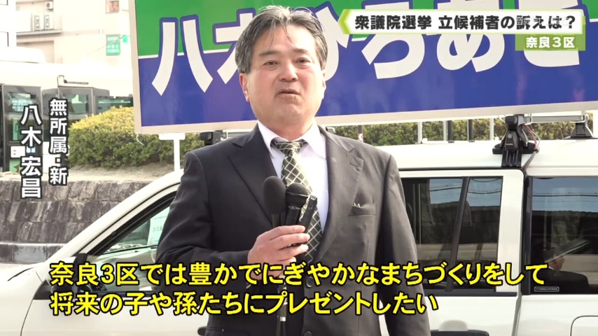2月8日に投開票される衆議院選挙。それぞれの小選挙区の候補者の訴えを届け出順に紹介します。最終日のきょうは奈良3区です。