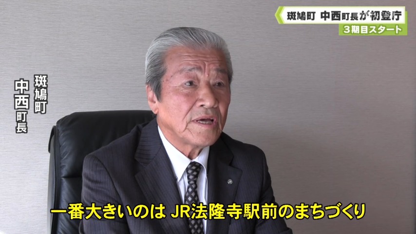 - 斑鳩町長選挙で無投票で3回目の当選を果たした中西町長が11日、初登庁しました。