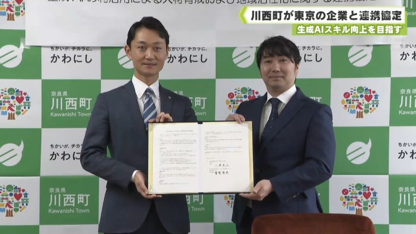 - 川西町は、職員の生成AIに関するリテラシー向上などを目的とした連携協定を東京都の企業と結びました。