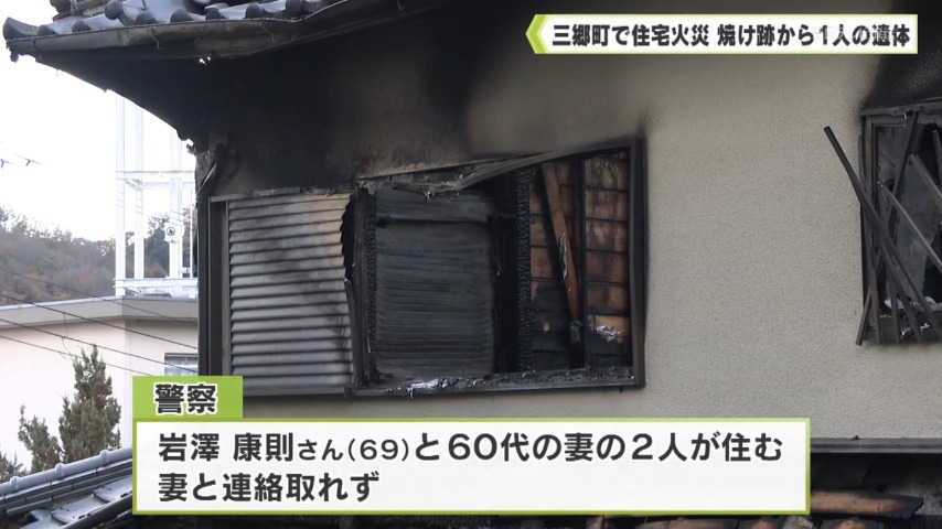 - 警察によりますと、この住宅には岩澤康則さん69歳と60代の妻の2人が住んでいて、岩澤さんは逃げ出してけがはありませんでしたが、妻と連絡が取れていないということです。警察は遺体の身元の特定と火事の原因を調べています。