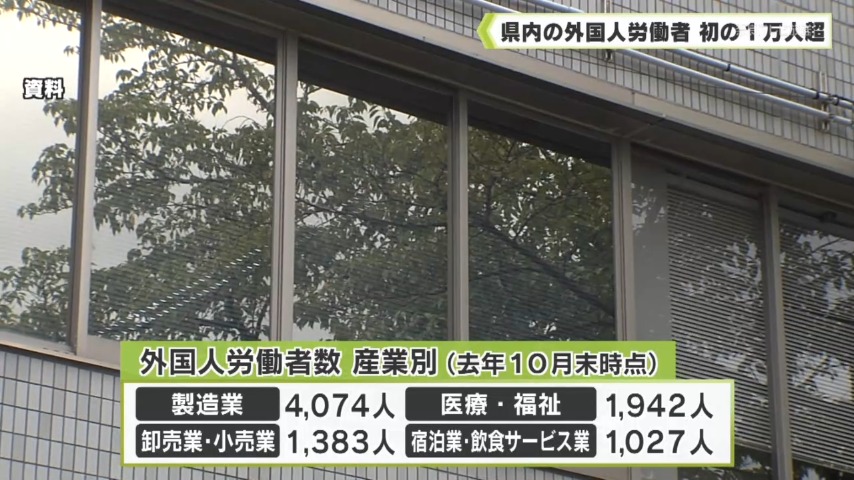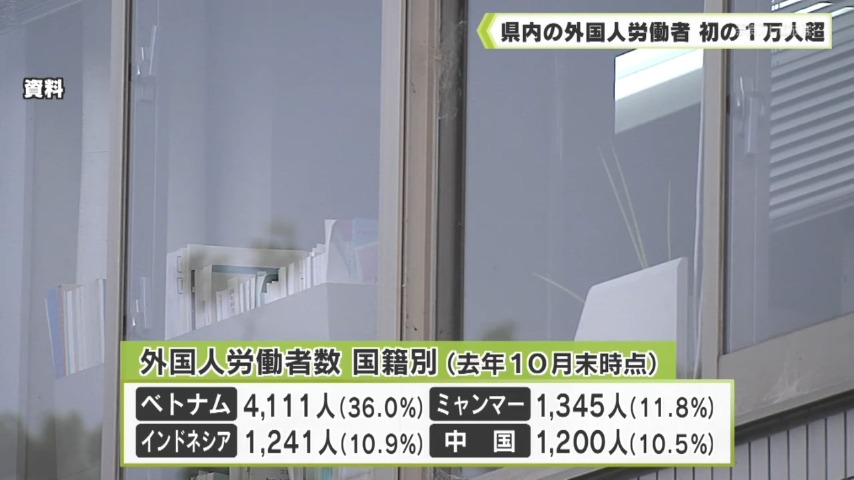 - 県内で働く外国人労働者の数は、2025年10月末時点で初めて1万人を超え、過去最多を更新しました。