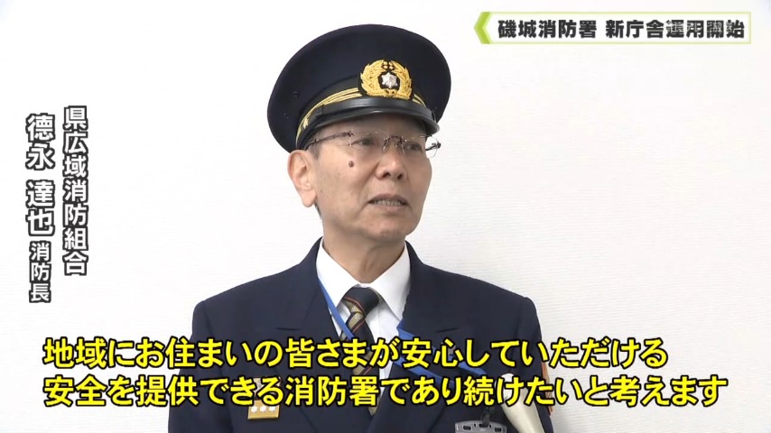 新たな庁舎は京奈和自動車道に隣接した場所で、德永消防長は隊員を前に「地域の皆さんからこの場所に消防署があって良かったと思われる活動を心がけてください」と訓示しました。