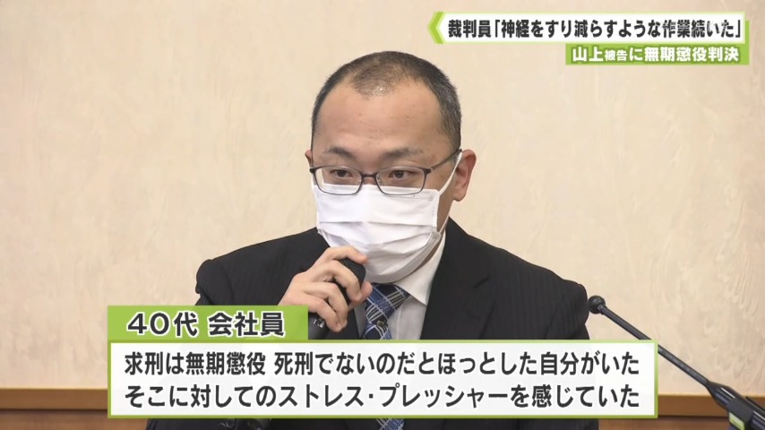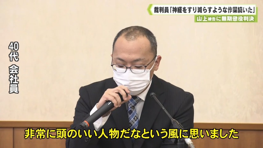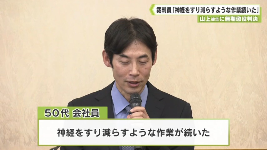 2025年10月28日の初公判から、16回に渡り行われた公判。判決後、裁判員と補充裁判員が記者会見しました。このうち40代の会社員の男性は山上被告の印象を次のように話しました。