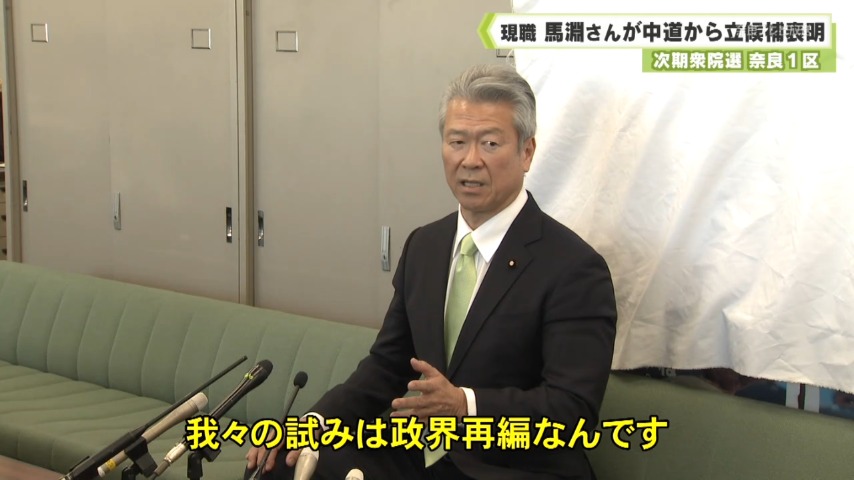 - 1月23日召集の通常国会の早い時期に衆議院が解散され、選挙が実施される見通しが強まる中、奈良1区に現職の馬淵澄夫さんが立候補を表明しました。