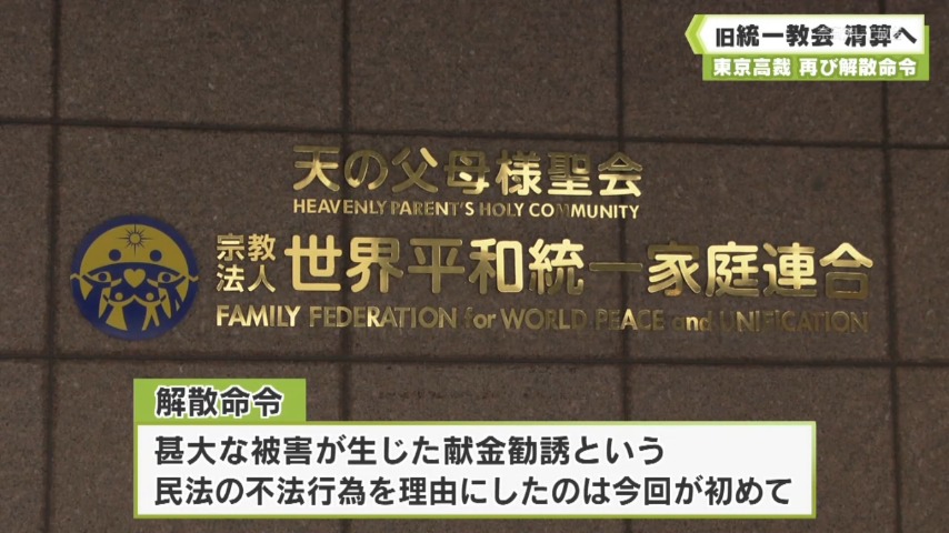 旧統一教会・世界平和統一家庭連合の解散命令請求を巡る即時抗告審で、東京高等裁判所は、4日、教団の解散を命じた東京地裁の決定を支持し、教団側の即時抗告を退ける決定をしました。