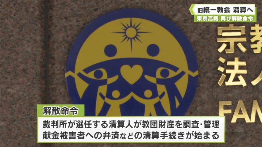 東京高裁 再び解散命令 旧統一教会 清算へ